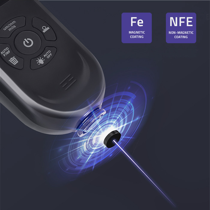 Merač debljine sloja (laka) namenjen za čelik i aluminijumske premaze. Dizajniran je za precizno merenje neprovodljivih premaza na metalnim površinama i neferomagnetnih premaza na feromagnetnom metalu, kao što je debljina boje na automobilu. Uređaj poseduje ugrađenu magnetnu indukciju i dualnu sondu visoke osetljivosti, automatski detektujući karakteristike podloge i izračunavajući debljinu premaza.