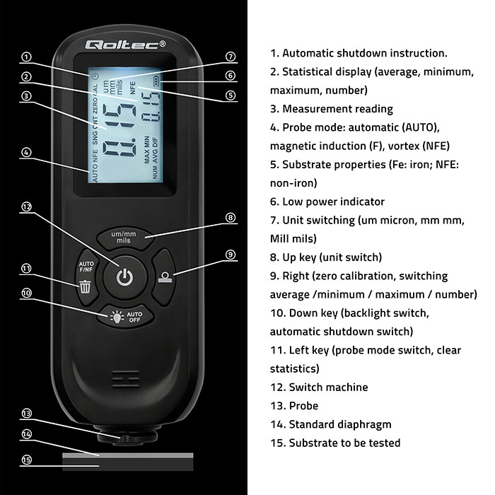 Merač debljine farbe Qoltec tehnički podaci